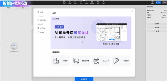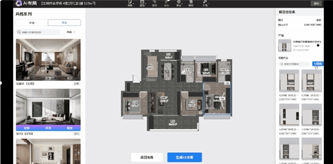 在草案设计阶段:三维家AI布局全新升级,智能户型拆改支持识别承重墙、门窗结构,自动生成多套拆改方案,优化布局策略,让设计师告别“拆墙纠结症”;优化手动分区布局,轻松布局“开放式厨房”等个性设计需求,让AI布局更精准可控;同时,企业可以上传硬装、材质、软装部品等产品组合,通过AI工作台配置各种风格套系,让设计师一键快搭企业套系。