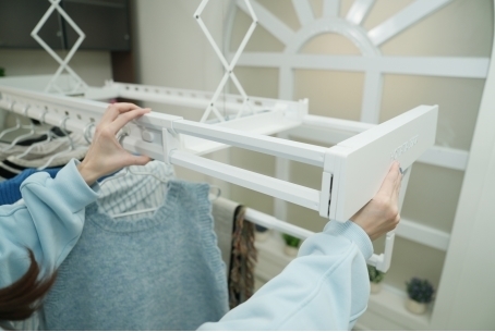 在晾晒功能方面,好太太零嵌晾衣机S10采用了伸缩4杆设计,配备22个长腰挂孔,大孔晾得多,一孔挂2件,70斤的承重力,大件轻松应对。考虑到每个家庭的晾晒被子需求,好太太采用行业首创可移动“T”型晾被杆,可单杆单晒或双杆并拢晒被,真正实现衣被同晒。