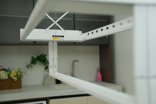 与其他具备隐形功能的晾衣机不同,好太太在保证能晾晒更多衣物的同时,做到了零距离贴顶平嵌,四边零距离无缝嵌入,嵌入后与吊顶齐平,实现视觉上的轻薄感,打造干净利落的家居氛围。视觉上,无任何多余零件,看不出是一台晾衣机,升降灵活自如,浑然一体。