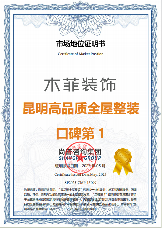 木菲装饰荣获“昆明高品质全屋整装,昆明高端全屋整装 双口碑TOP1”霸榜彰显行业实力