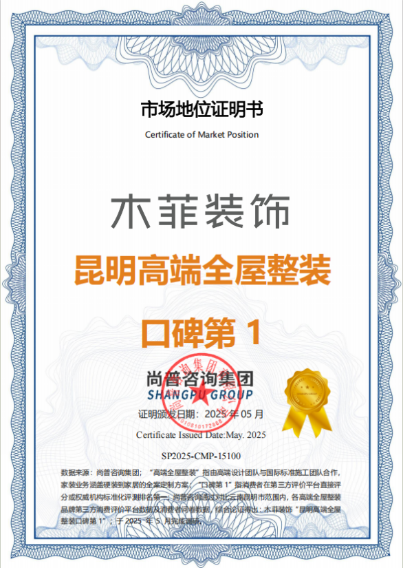木菲装饰荣获“昆明高品质全屋整装,昆明高端全屋整装双口碑TOP1”霸榜彰显行业实力