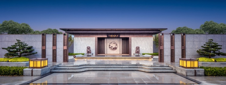 社区以“王府进制”打造归家礼序空间,入口处宽19.9余米、高6.6米的大门、4米的官帽挑檐极具气势,两尊纯铜狮子由“五福临门”镂空字样构成,护佑平安之余传递出吉祥喻意。